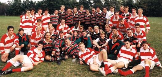 John Regan set us straight: ‘SJC 1st XV vs Pretoria Boys High, Sep/Oct 1997. We scored a penalty in the first minute, then didn’t see the ball for the rest of the game. The game certainly wasn’t relaxed and friendly, but the afters was great, getting to know our South African counterparts. So much so that one of the touring party, Rhett Kenmuir (kneeling 4th from right) joined the school the following January.’