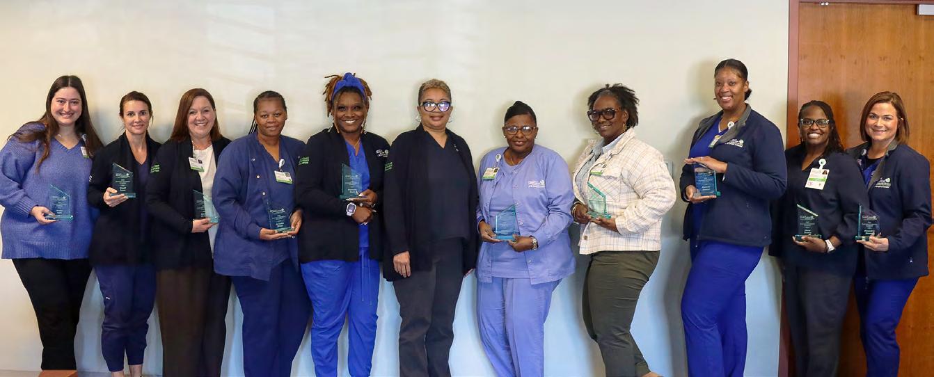The fourth and final group of 2025 Customer Service Champions completed their training as part of the Outpatient Oncology Customer Experience Project at the Nancy N. and J.C. Lewis Cancer & Research Pavilion. These co-workers were trained in best-practice principles for infusing empathy into every aspect of a patient’s cancer care journey. Pictured here from left to right are: Jordan Jaffie, Denell Forster, Jennifer McKown, Ja’Maica Brown, Samantha Davis, Regina Johnston, Vanessa Gregory, Charlene Nesbitt, Kimberly Beamon, Ebony Thomas, and Alexandria Stevens