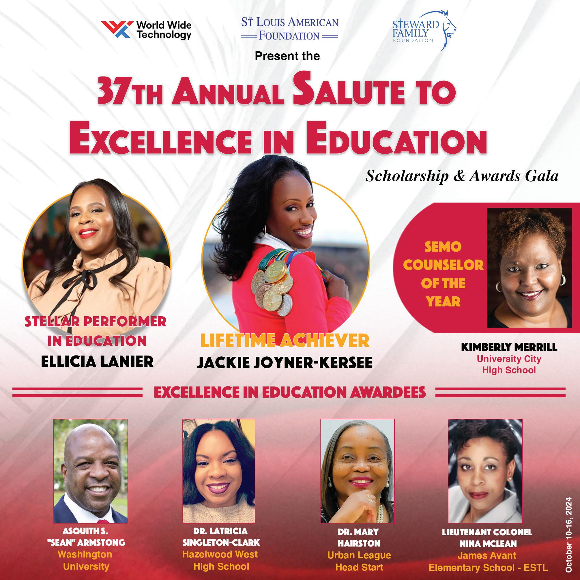 This year we are delighted to celebrate the 37th anniversary of the St Louis American’s Salute to Excellence in Education. The event began in 1988 as a small,community-focused banquet, honoring a diverse group of individual achievers, with a few hundred attendees. We handed out some framed certificates to the awardees, had a few speeches, and donated the modest dollars from the net proceeds to varied community needs. In 1994, we created the St Louis American Foundation, a 501c3 organization, with a primary focus on education, equity and individual educators. Fortunately, this initiative resonated with the St Louis community, including public, private and non-profit sector organizations, along with some generous individual donors. They have strongly embraced our reconsidered vision: celebrating outstanding individual educators, while providing much needed funding to help deserving youth succeed.