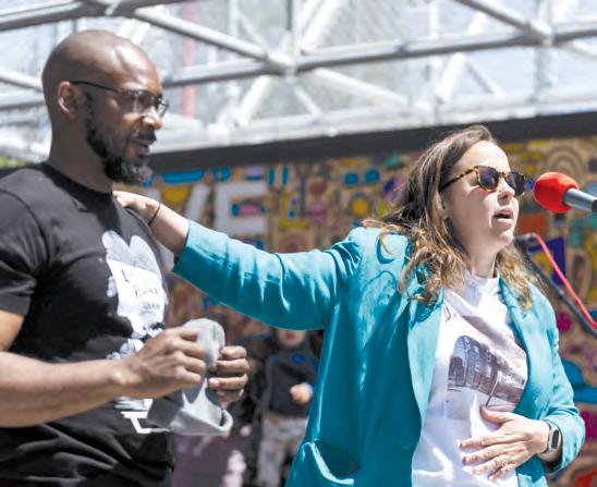 Cherokee Street Community Improvement District, introduces William Porter, owner of Master Pieza, during the opening of Love Bank Park on Sunday, April 21, 2024.