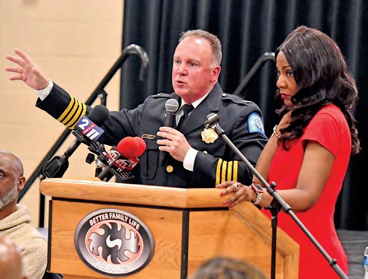 Carr Lane in 1823, none of the 46 preceding mayors have ever held news conferences announcing a plethora of specific investments, resources and opportunities for an area dominated by Black residents of the city. As a prelude to Jones’ upcoming “State of the City” address next month, the mayor laid out specific investments in neighborhood stabilization; housing, construction, and rehabilitation; economic development; enhanced McDonald’s supporting injured Aryiah Lynch St. Louis Mayor Tishaura O. Jones responding to a question during a public safety town hall meeting at Better Family Life Tuesday, Apr. 23, 2024. Photo by Wiley Price / St. Louis American consolidation. The process requires applicants to select an income-driven repayment plan, which could, in some situations, lead to total loan cancelation. “Many people went to school, borrowed to get higher degrees to enter those fields, and don’t make a lot of money,” says Jill DesJean, Senior Policy Analyst at the National Association of Student Financial Aid Administrators. Photo by Wiley Price / St. Louis American The Student loan consolidation deadline April 30 Mykah Scates 16, adjusting the light on Annie Malone CEO Keisha Lee on the BJC Health Kids Express Thu. Apr. 18, 2024. The bus brings free health care services to children in need.