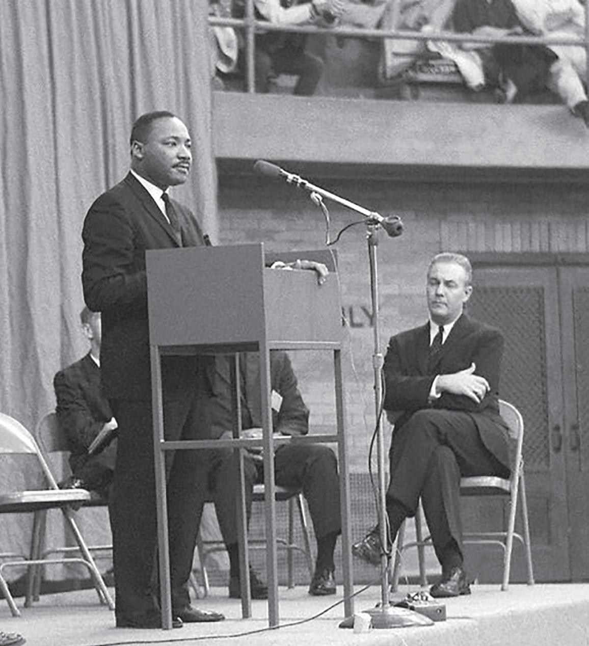 The March on Washington would have been fresh on the minds of the capacity crowd in West Pine Gym at Saint Louis University. It was two days before he would win the 1964 Nobel Peace Prize.