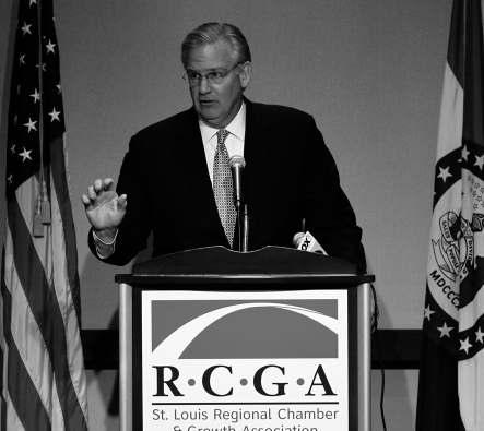 Gov. Jay Nixon makes remarks during the Public Policy Speaker Series at the Regional Chamber and Growth Association in St. Louis on June 23.