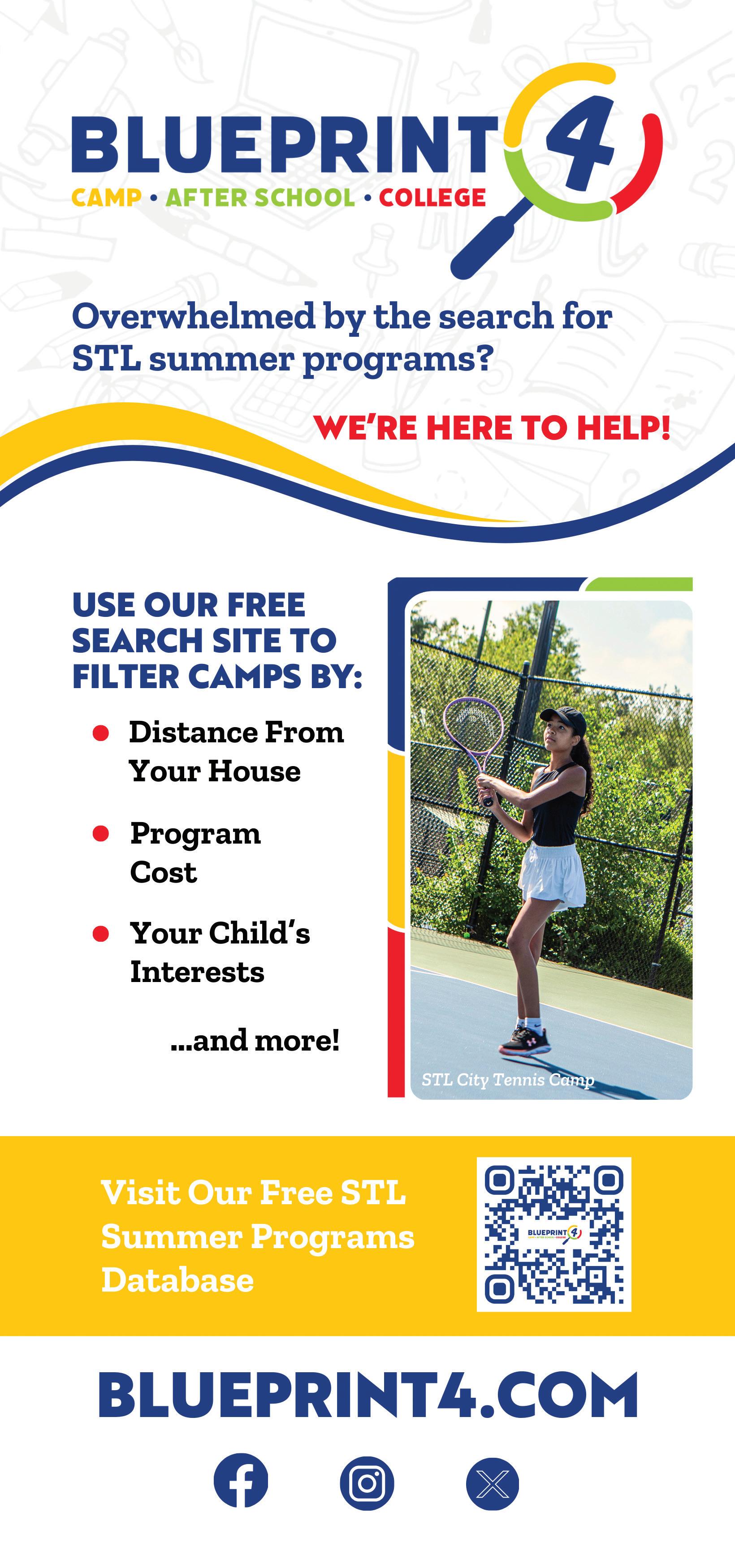 This Camp Guide was produced in partnership with Blueprint4, a free database of St. Louis-area out-of-school programs. To find additional information about these summer programs and many more, visit blueprint4. com.