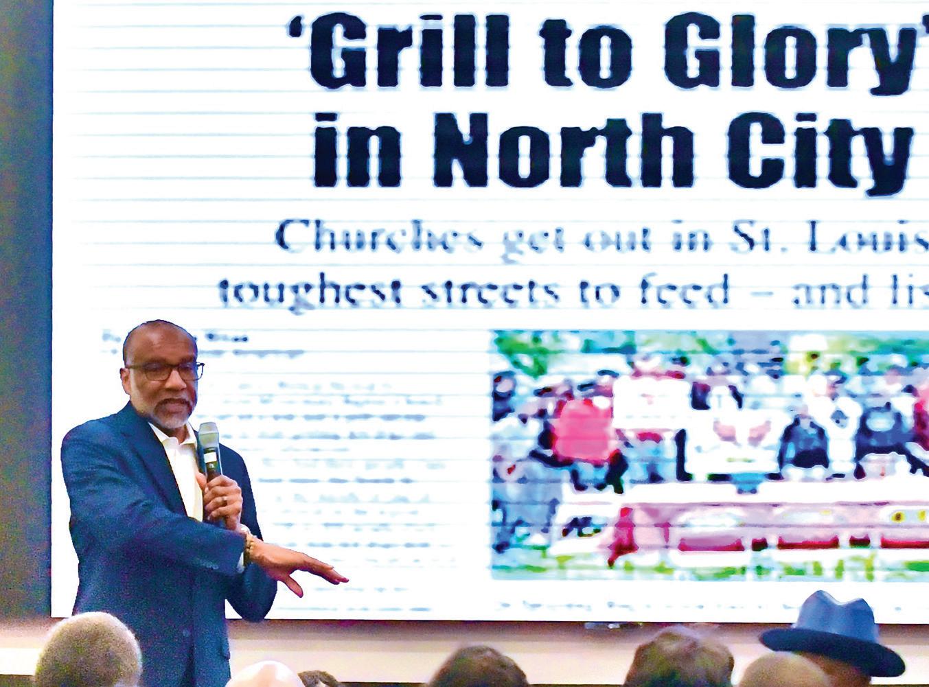 COGIC’s Dr. Charles Reece from Memphis, Tn. speaking at the Urban League of St. Louis’ Grill to Glory meeting on Apr. 25, 2025.