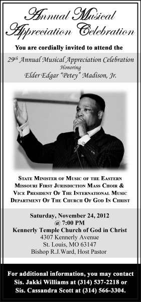 31 at the Scottish Rite Cathedral and feature music, dance, and a theatrical performance. At the end of the evening, there will be a traditional African American Night Watch service which will allow all members of the St. Louis community to experience this 150 year old tradition.