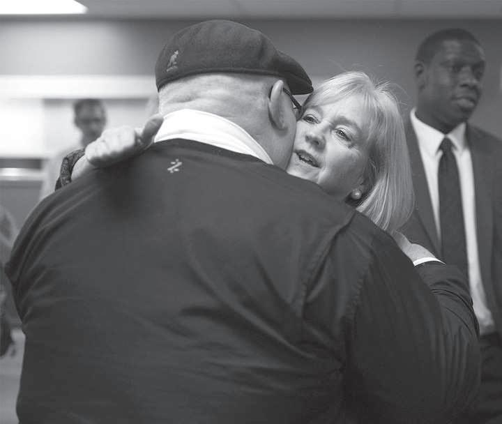 Mayor Lyda Krewson greeted attendees at an election night watch party at the St. Louis Police Officers Association’s offices on Tuesday, November 7. City voters approved Proposition P, a sales tax hike to fund salary increases for police officers and firefighters, by a 60-40 percent margin.