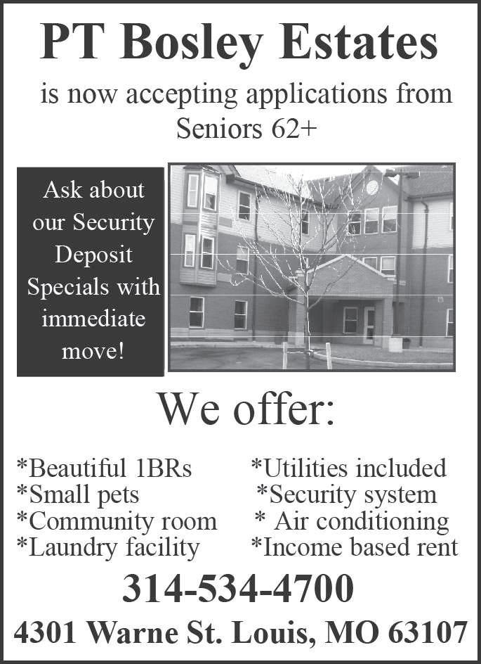 West Pine Apartments – 1 bedroom, 4490 West Pine Blvd, 63108 (314)534-0327 Badenhaus/Badenfest Apartments–0/1 bedroom, 8450 Gast Place, 63147 (314)388-1300
