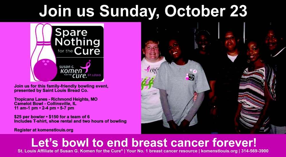 Sat. Oct. 29, 8 a.m. – Making Strides Against Breast Cancer Run/Walk in Forest Park /Upper Muny Parking Lot– St. Louis. 5K and 1.3 mile walk. Step off at 9 a.m. The event is free and non-competitive, but participants are encouraged to collect donations and pledges. For more information, contact the American Cancer Society at 314-286-8185 or visit makingstridesstlouis.org.