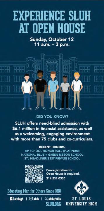 to walk with those who suffer and to accompany families in times of trial. Just as our city continues the hard work of rebuilding, we at SLUH continue the daily work of forming young men, each of whom brings his own interior strains and struggles. We offer these young men education, but even more we offer hope, healing and empowerment for service to our city and the world. SLUH is a special place whose mission has always been to form young men of competence, conscience, and compassion. Years ago, while other schools were closing or choosing to leave the city of St. Louis, SLUH dou-