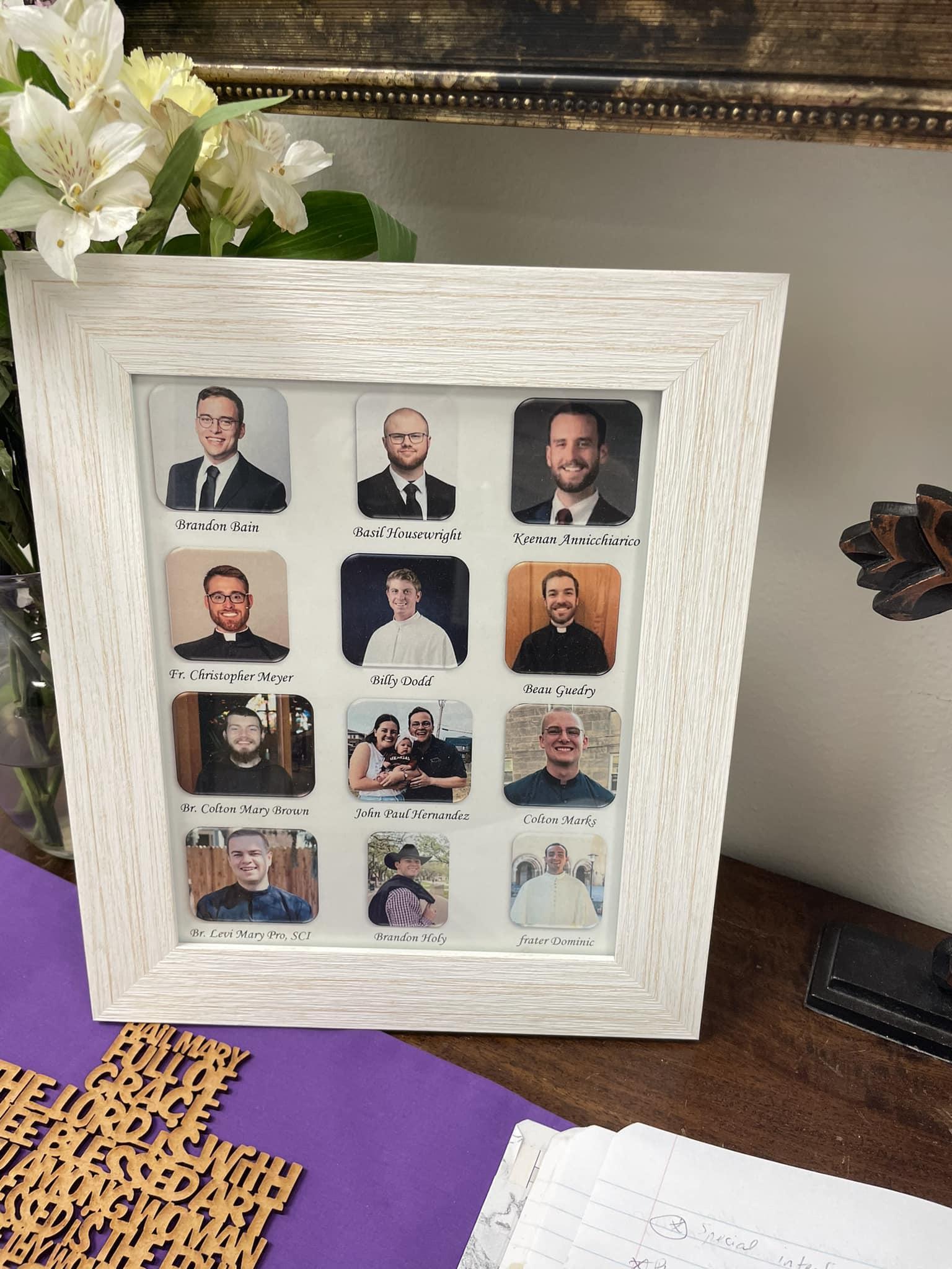 Pray for Fr. Christopher Meyer ‘05, KeenanAnnicchiarico ‘07, Beau Guedry (SJ) ‘08, Frater Dominic (Adrian Annicchiarico) ‘09, Brandon Bain ‘12, Br. Levi Mary Pro (Cameron Cashiola) ‘12, Basil Housewright ‘14, Br. Peter Mary of the Cross (Colton Marks) ‘14, and Brother Collin Mary Brown (Parishioner and SLCS Friend). Special prayers for Focus Missionaries John Paul Hernandez ‘11 and Brandon Holy ‘13