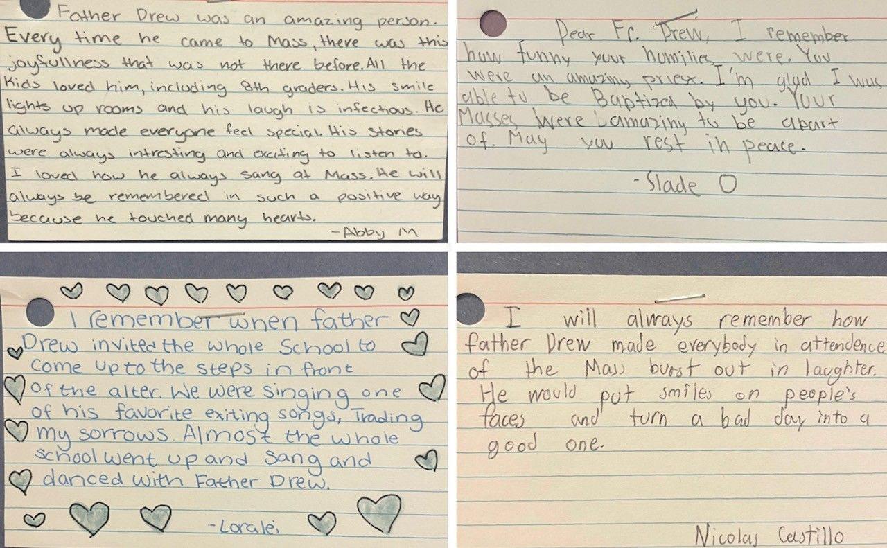 8th graders penned their favorite memories of Father Drew. Here is a sampling of their touching and fun expressions of love: