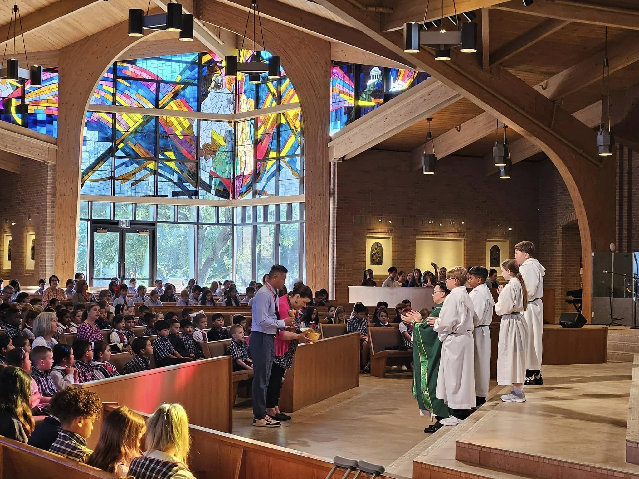 As many of you know, we had to say goodbye to our dear Pastor, Fr. Drew Wood, who passed away peacefully on September 12, 2024. While this was a very sad time for our entire SLCS & Parish community, we are so grateful for all the time and memories we shared with Fr. Drew. He had such an impact on our school, all the students, faculty, and alumni over the years since 2002. He will be truly missed.