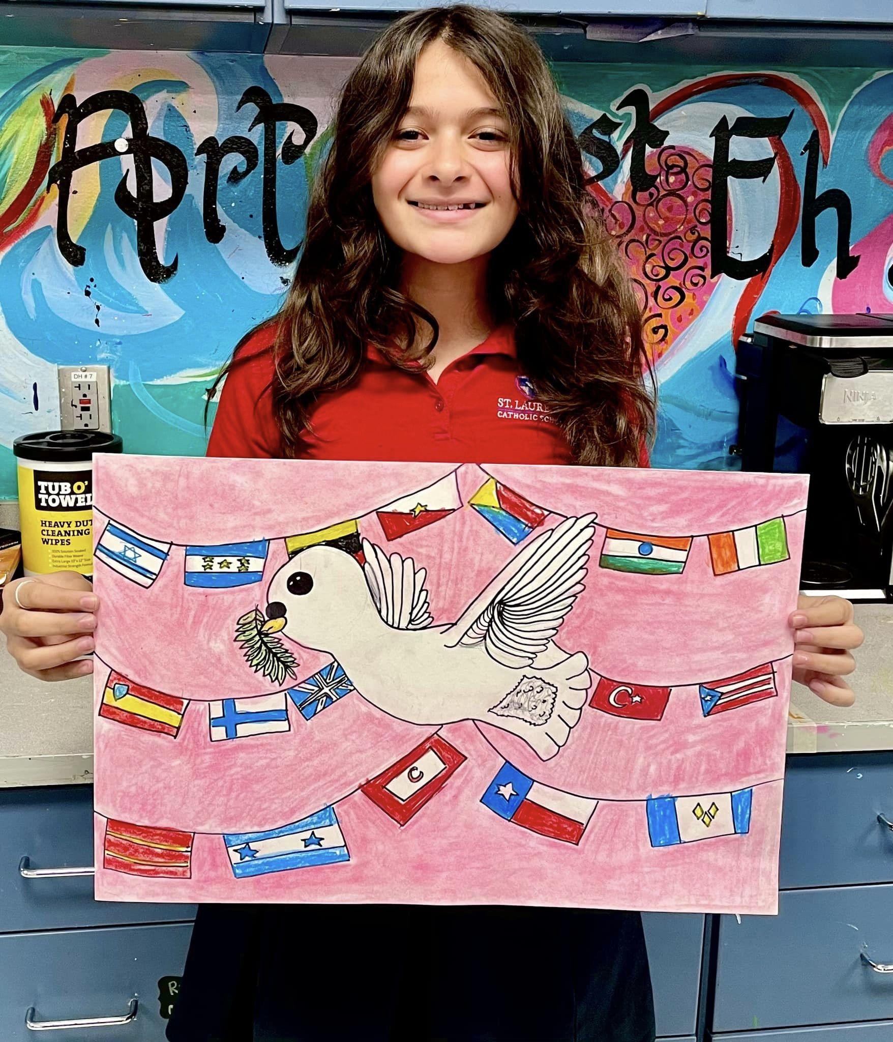 Izzy attends St. John XXIII College Preparatory, where she is involved in the Art program. Her artistic talent has earned her awards in the VASEArt competition and a school-wide award for Best EmergingArtist.At St. John, Izzy and her best friend founded a religious club, “Girls in Grace”.