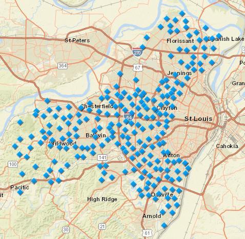 The VCP divides Saint Louis County into five Vector Control Management Areas (VCMAs). As noted in Table 2, each of these areas contains sections of unincorporated Saint Louis County, as well as independent municipalities. The five VCMAs range in size and differ in population density and geographic features, though all regions are fairly uniform with respect to common mosquito breeding sites. Weather permitting, the VCP conducts trapping and adulticiding activities from Sunday to Thursday on a rotating schedule by VCMA