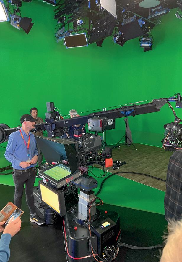 The tour moved on to Studio 6 (9m x 13.5m) which we found just as it was when we visited in 2018 – one end has the traditional presenters desk with a set largely dressed by screens with graphic displays, and the lighting rig mostly uses ARRI Sky Panels and Source 4 profiles.
