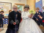 The Brightest Star, played by Rupert H-G, guided Mary (Beatrice C), Joseph (Dominic H-G), and their faithful donkey (Riagan B) on their journey, supported by a lively cast of angels, shepherds, soldiers, narrators, and wise men. Every child played their part in making the performance one to remember.