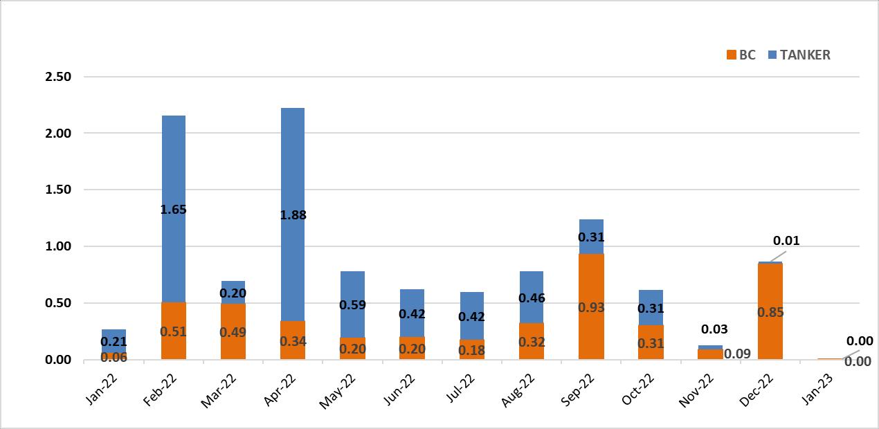 Ⅳ . TANKER | PAGE No. 12 2023 1 월 2 월 3 월 4 월 5 월 6 월 평균