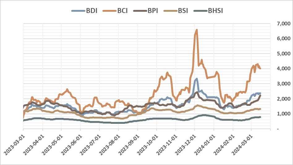1 년 전보다 95% 올랐고 벌크선운임지수(BDI)도 13 일 2370 으로 작년 3 월보다 47.8% 상승했다