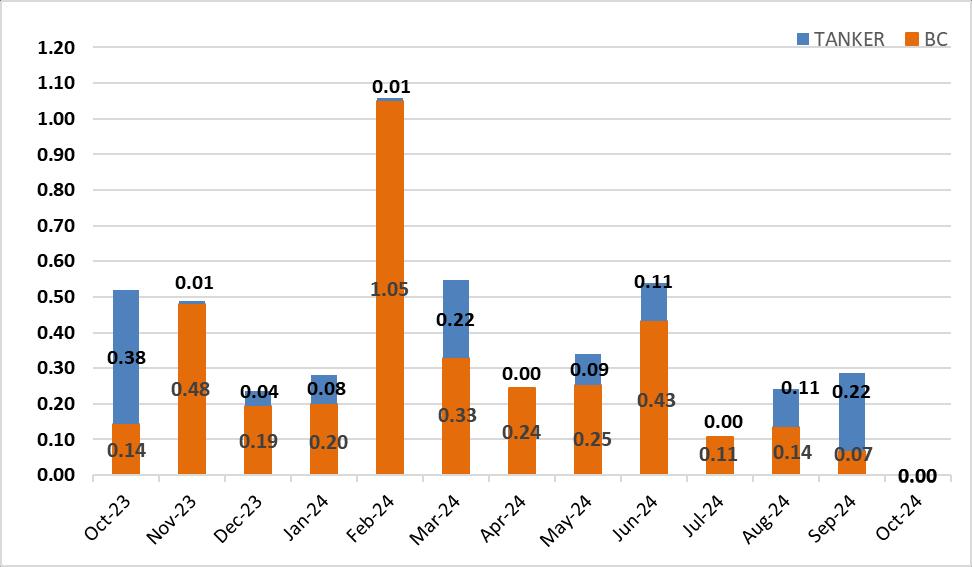 생산량 증가로 인해 하루 25 만 T 을 수송하던 파이프라인이 포화상태에 이르자 5 만 5000T 을 수송할