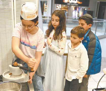 Several dozen people learned the art and science of matzo baking on March 27 during a Model Matzah Bakery experience at Chabad of Chesterfield. The 18 crucial minutes between the time flour and water are combined until baking commences ticked off quickly. Fortunately, this was only a pre-Pesach demonstration if the dough started to leaven, thus becoming chametz. Kids and adults got in the spirit, from grinding wheat to rolling matzah from dough balls, ready to put in the oven to bake. Photos: Bill Motchan