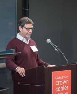 ABOVE: Nancy Morrow Howell (left), director of the Friedman Center for Aging at Washington University, and Marylen Mann, chairman emeritus at Oasis Institute. RIGHT: Crown Center Board President Mark Rubin addresses attendees.