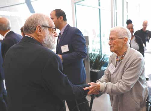 At the opening, Holocaust Survivor Rachel Miller greets Andrew Rehfeld, former Jewish Federation of St. Louis president and CEO.