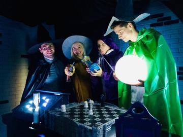 MRS. BERLIN INTO A SCHOOL OF MAGIC AND WORK TOGETHER TO ESCAPE A HARRY POTTER THEMED ROOM AND DINNER AT RED ROBIN.