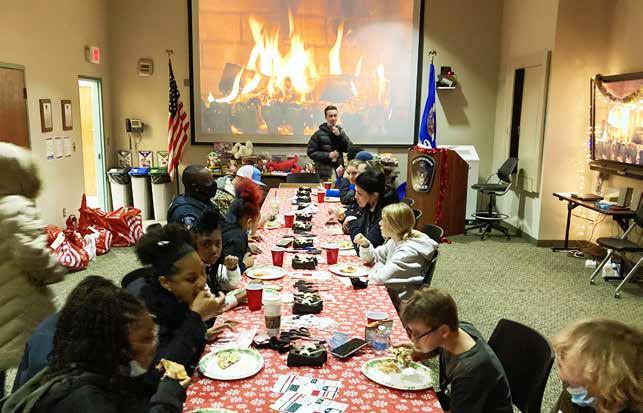 The community outreach team offers winter and spring school break programs that focus on at-risk youth in the community who have uncertain home and life schedules during long school breaks. These programs are filled with fun events for both the youth and officers, including ice skating, snow tubing, trampoline parks, skateboarding, virtual reality and more. Along with the fun are educational visits to museums and manufacturing facilities, such as a soda bottling company and a U.S. Bank Stadium tour. The program also includes a community give back event, with activities such as picking up trash from the skate park and packing food boxes (provided by St. Louis Park-based Matter) to serve the homeless.