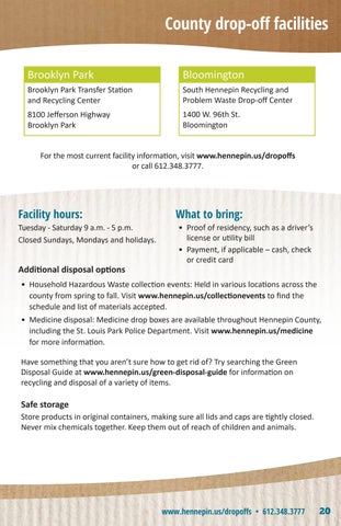 For the most current facility information, visit www.hennepin.us/dropoffs or call 612.348.3777.