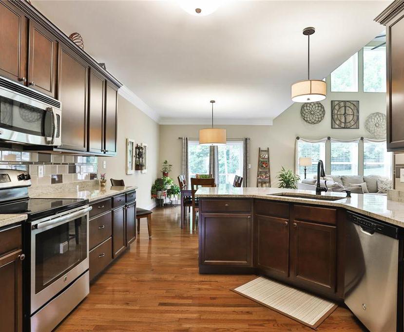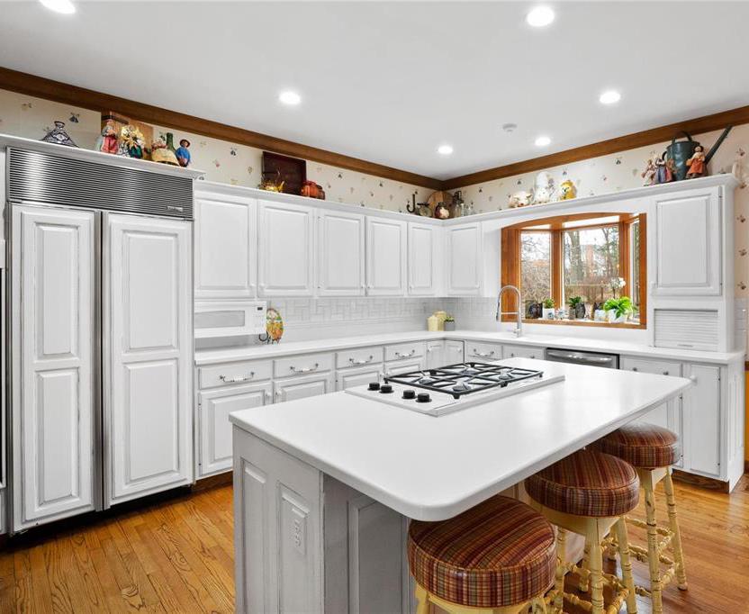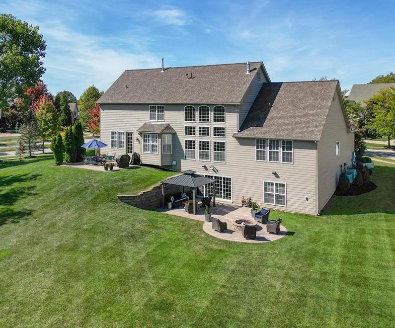Beautiful curb appeal invites you to fall in love with this spacious 1.5 sty home with 5 bed rooms.Gleaming wood floors accent most of the main level.Signature staircase features beautiful millwork.Main floor offers wood pan eled den,large dining room w/bay window, great room w/floor to ceiling windows,custom walk behind bar,beautiful beamed vaulted ceil ing & gas fireplace. Updated gourmet kitchen features an abundance of white cabinets,6 burner gas cooktop w/pot filler & electric oven 2 garbage disposals soap stone countertops ,breakfast room leading to a relaxing sunroom. Rear staircase to upper level w/4 large bed rooms & 2 jack and jill baths. Main floor luxury primary suite features double closets & updated bath.Ceiling fans throughout.Finished lower level w/large walk behind bar,full bath,family room.Walkout stairs to exterior. Oversize side entry 3 car garage. Back patio features a beau tiful custom waterfall, hot tub & fantastic 1.4 acre lot ideal for pool. Immediate occupancy.
