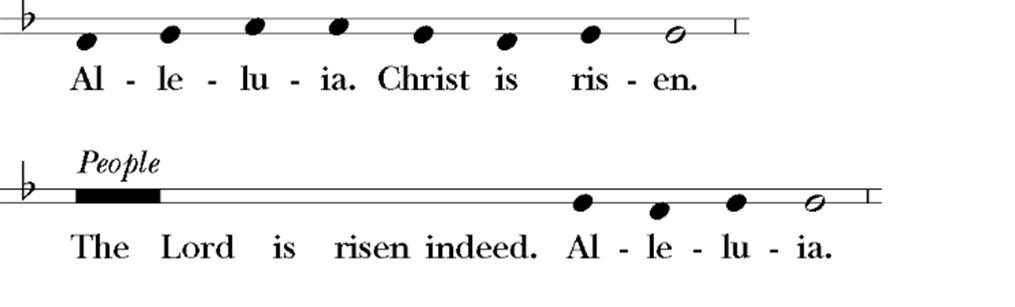 Celebrant On this day the Lord has acted, alleluia. People We will rejoice and be glad in it, alleluia.