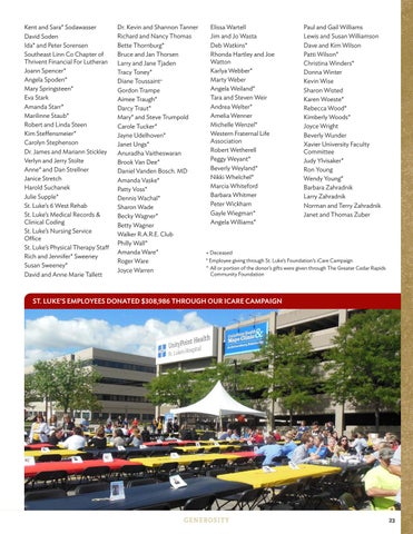 + Deceased * Employee giving through St. Luke’s Foundation’s iCare Campaign ^ All or portion of the donor’s gifts were given through The Greater Cedar Rapids Community Foundation