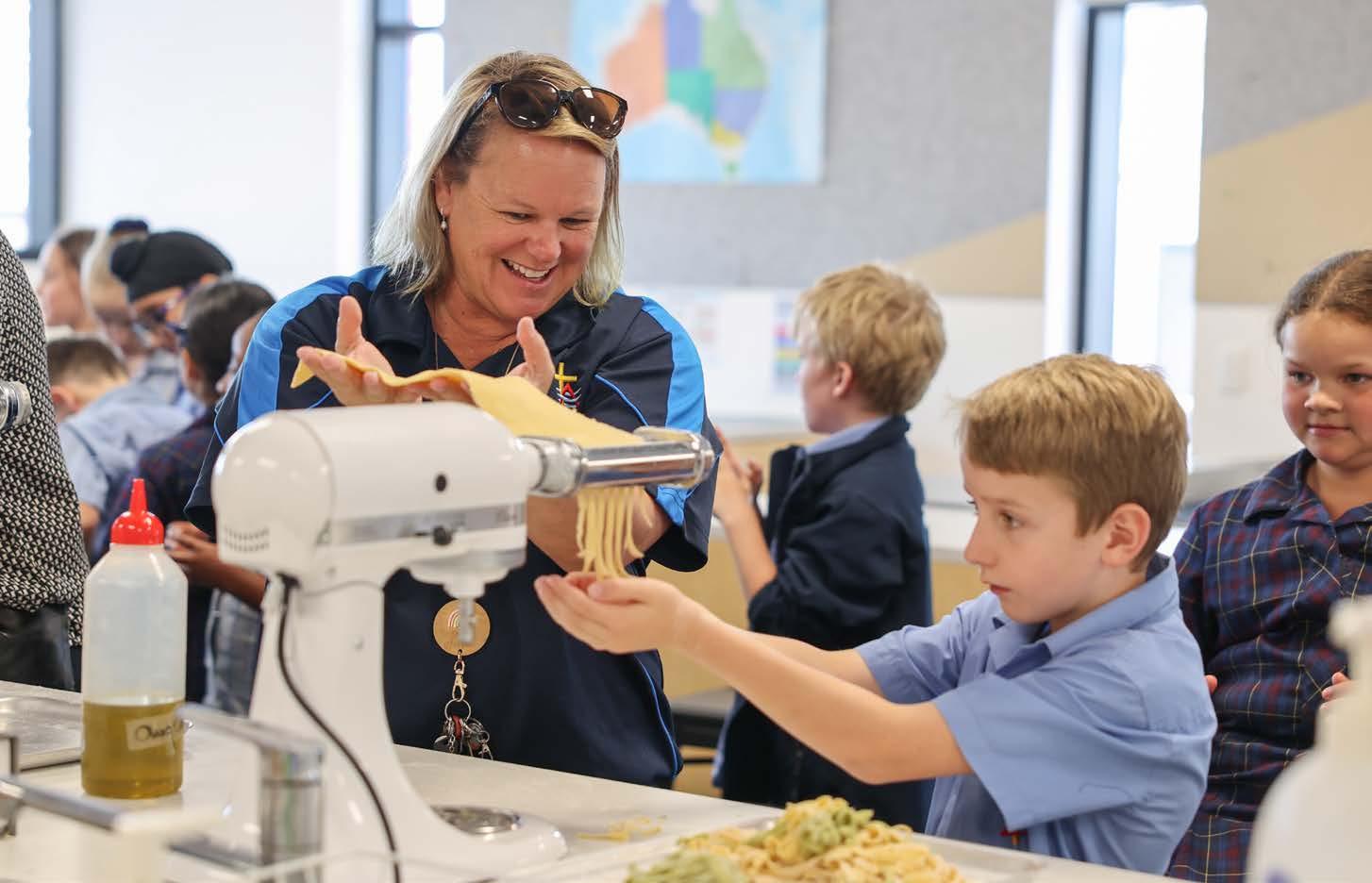 Her Year 3 students have grown everything from corn, tomatoes, peas, and pumpkins to strawberries and sweet potatoes, which often start their lives sprouting in classroom jars. The produce is then turned into delicious dishes such as pasta, quiche, zucchini chocolate cake, and even homemade tzatziki, a recent hit among students. “It’s great to give students that bit of variety. They