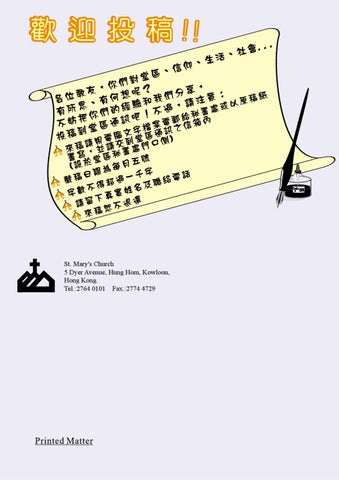 St. Mary's Church 5 Dyer Avenue, Hung Hom, Kowloon, Hong Kong. Tel.:2764 0101 Fax.:2774 4729