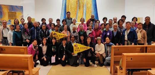 本堂聖若瑟會每年都安排兩次朝聖活動。 今年下半年朝聖旅行已於12月3日舉行,除 本會參加的三十多位會員外,我們也與其他善 會和朋友分享這朝聖的歡樂。當天參與人數共 六十人。朝聖的目的地是粉嶺聖若瑟堂。該堂 在翻新工程後建築得非常現代化,是近年香港 教區最受歡迎的朝聖地之一。透過導賞員的介 紹,我們對堂區有更深的認識。