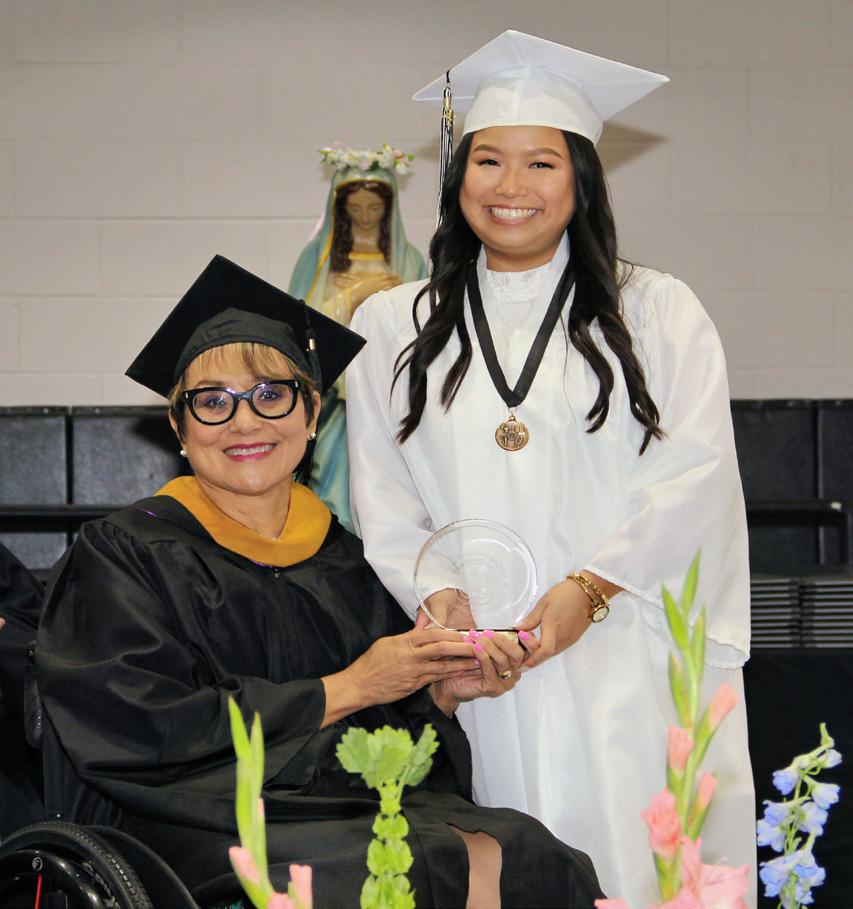 The Veritas Award was presented by school President Dr. Cynthia A. Thomas to Elise Catherine Grefer and Mia Jeanette Signorelli.