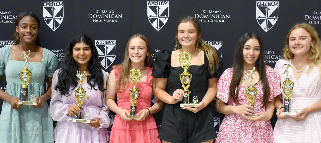 The Veritas Award is the most prestigious award presented to a St. Mary’s Dominican High School graduating senior. Selected by the leadership, administration, and faculty, the award recipient demonstrates exemplary understanding of the Dominican Charism. Following the example of St. Dominic de Guzman, founder of the Dominican Order, the Veritas Award recipient faithfully strives to seek Truth through prayer, study, community, and service. She preaches the Truth of the Gospel through the example of her life and calls forth the best in others.