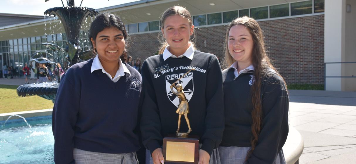 The award recognizes the student’s outstanding, dedicated service to St. Mary’s Dominican High School. Dominican life and growth are mirrored in her reflection of the school’s philosophy by belief in God and respect for the dignity of all human beings.