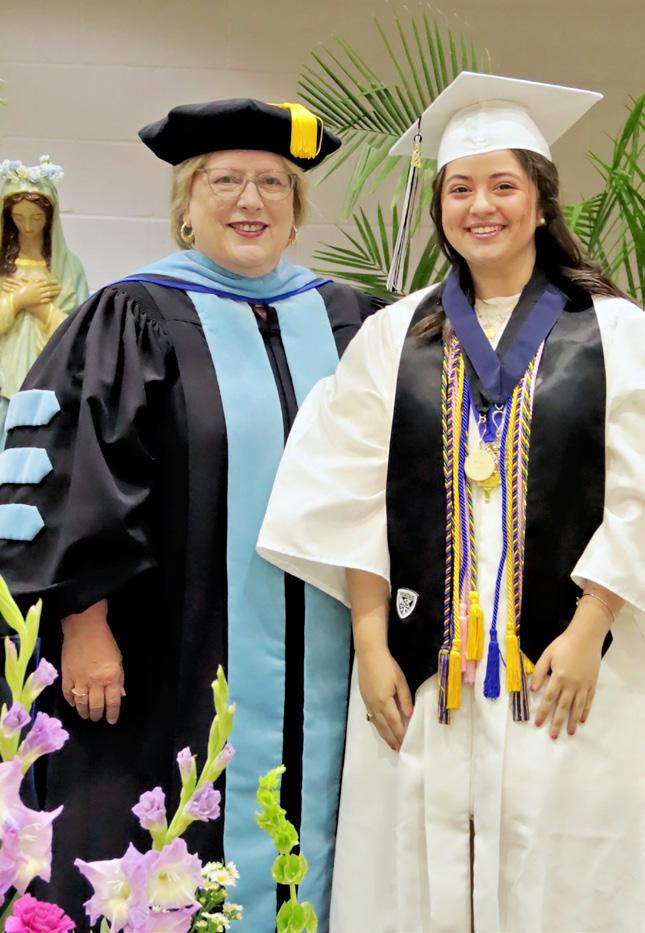 Theresa Bertucci Truxillo is the new Director of Enrollment at Jesuit High School. Theresa also graduated Summa Cum Laude with a Master of Arts in Pastoral Leadership from Notre Dame Seminary Graduate School of Theology. In addition to these honors, Theresa is also the proud mother of Camille Truxillo, ’24 Valedictorian.