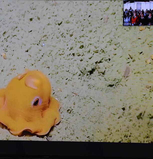 It was 5 am and the sun was just rising in the Pacific Northwest over the Hawaiian Islands when Dominican alumnae Catalina Rubiano ’11 and Hannah Paradis ’18 on the international Exploration Vessel (E/V) Nautilus connected with students and faculty from robotics, ecology, earth sciences, physics, biology, and the science honor society who had gathered in the Technology Center for a ship to shore session. During the next hour Catalina and Hannah shared what is like to be part of the Nautilus team.