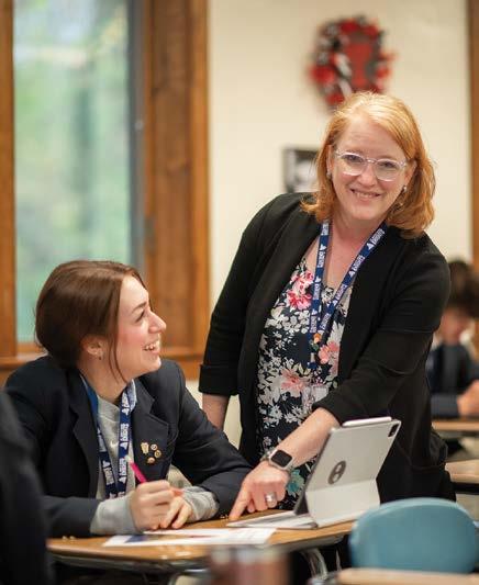 Cover photos (top): Loretta “Tiny” Taylor, Class of 1942, joined her great-granddaughter, Olivia, on her registration day. Along with them are Olivia’s parents, Karen and Scott ’98, and grandparents Frank ’67 and Sue. (Bottom, from left): Oil paintings above altar of Christ the Teacher, St. Francis Xavier, Theodore Ryken, Mother Catherine Spalding and St. Therese of Lisieux / Math and Special Programs teacher Jen Baker with Tamari Harley ’27 /
