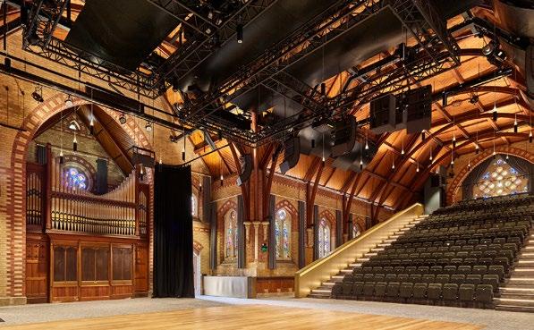 The former St George's Church has been developed into a new performing arts facility. The Performing Arts Centre, St George's which houses a 400 seat auditorium, has state-ofthe-art sound and lighting and a sprung floor for dance and movement. The contemporary fittings have been sensitively installed to preserve the integrity of the heritage features such as the restored stained-glass windows and the impressive organ.