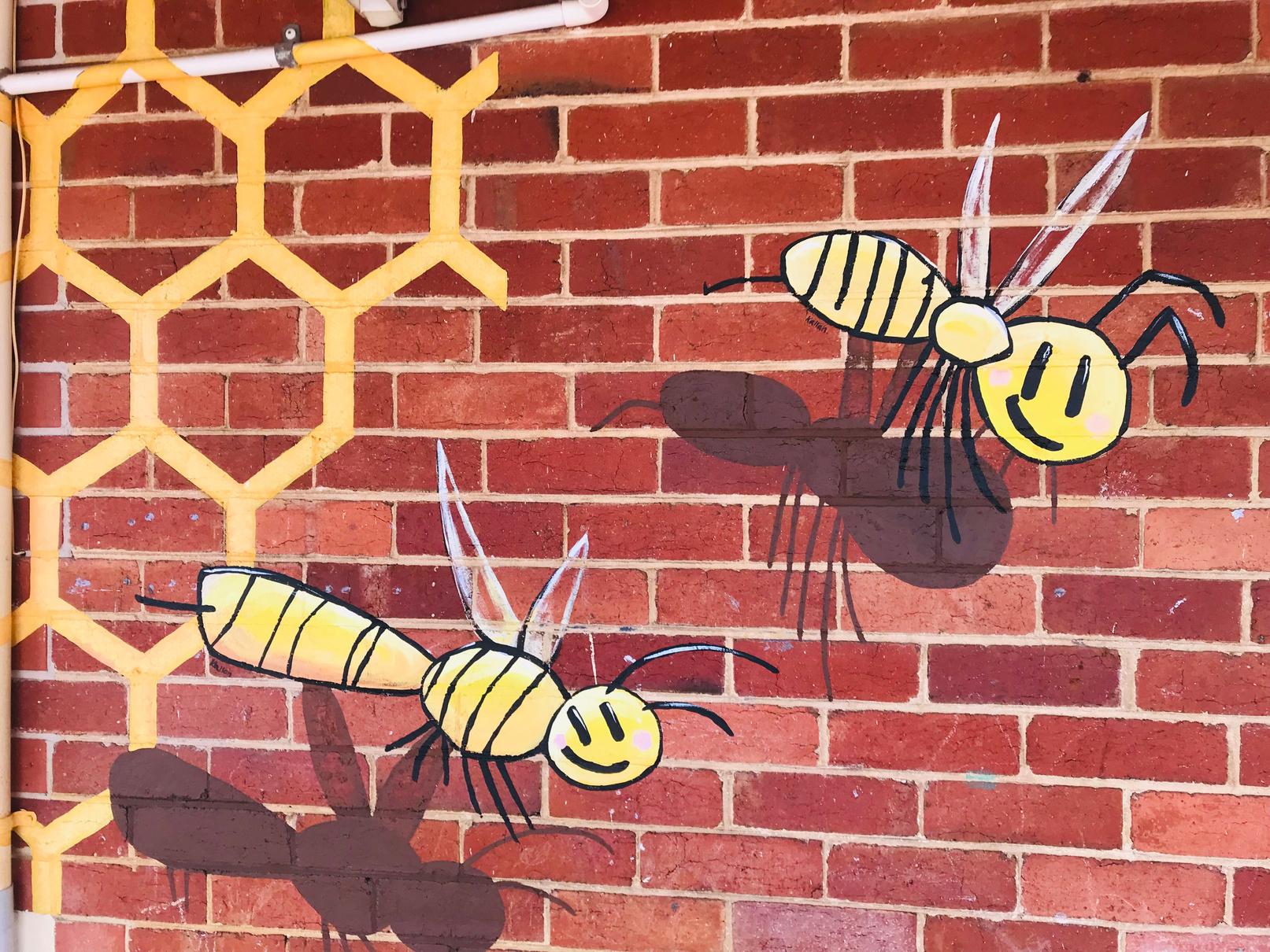 Our Pre Primary Mural is underway. Students from Pre Primary have designed giant bees which will be painted flying across the wall. Watch this space as they come to life