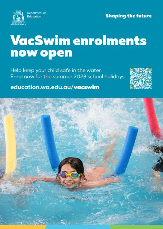 Enrolments are now open for VacSwim swimming lessons during the summer school holidays. VacSwim offers fun lessons at beach or pool locations. They are a great school holiday activity and they teach valuable safety skills to help keep your child safe in the water.