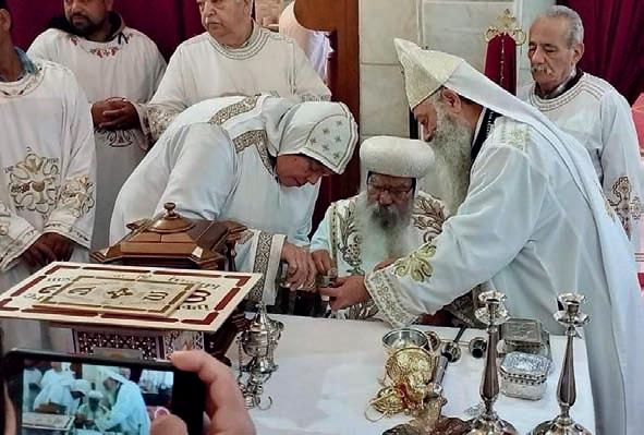 نﺎﯾرﻌﻟا موﺳرﺑ ﺎﺑﻧﻷا سﯾدﻘﻟا رﯾدﺑ ،لﯾرﺑأ ۱۳ تﺑﺳﻟا موﯾ مﯾﻗأ تﺎﻣﺣرﻟا ثﻠﺛﻣ ﺔﺣﺎﯾﻧ ﻰﻠﻋ ﺎﻣوﯾ نﯾﻌﺑرأ رورﻣ ىرﻛذ سادﻗ ،ةرﺻﻌﻣﻟﺎﺑ موﺳرﺑ ﺎﺑﻧﻷا سﯾدﻘﻟا رﯾدو ةرﺻﻌﻣﻟاو ناوﻠﺣ فﻘﺳأ ﻲﺗﻧﺳﯾﺑ ﺎﺑﻧﻷا ﺔﻓﺎﯾﻧ ةرﺻﻌﻣﻟﺎﺑ نﺎﯾرﻌﻟا ،ﺔﯾﺷرﺎﺑﯾﻹا ءﺎﻧﺑأ نﻣ ةرﯾﺑﻛ ﺔﯾﺑﻌﺷ ﺔﻛرﺎﺷﻣ دﮭﺷ يذﻟا سادﻘﻟا ﻰﻠﺻ ،سدﻘﻣﻟا ﻊﻣﺟﻣﻟا رﯾﺗرﻛﺳو يدﺎﻌﻣﻟا نارطﻣ لﺎﯾﻧاد ﺎﺑﻧﻷا ﺔﻓﺎﯾﻧﻟا بﺎﺣﺻأ دﯾدﺣﻟا ﺔﻛﺳﻟا قرﺷ عﺎطﻗ سﺋﺎﻧﻛﻟ مﺎﻌﻟا فﻘﺳﻷا سورﯾﺗرﺎﻣ ﺎﺑﻧﻷاو ﺎﺑﻧﻷاو ،ﺔﯾﻗرﺷﻟا دﻼﺑو سودﺎﻗدو رﻣﻏ تﯾﻣ فﻘﺳأ بﯾﻠﺻ ﺎﺑﻧﻷاو ،ةرھﺎﻘﻟﺎﺑ دﯾدﺟﻟا فﻘﺳﻷا لﯾﺋﺎﺧﯾﻣ ﺎﺑﻧﻷاو ،ةزﯾﺟﻟا ﺔظﻓﺎﺣﻣﺑ هوﻣط فﻘﺳأ لﯾﺋوﻣﺻ ةرﺻﻌﻣﻟاو ناوﻠﺣ ﺔﯾﺷرﺎﺑﯾﻹ ،ناوﻠﺣ ﺔﯾﺷرﺎﺑﯾإ ﺔﻧﮭﻛ ﻊﻣﺟﻣ نﯾﻌﺑرﻷا سادﻗ تاوﻠﺻ ﻲﻓ كرﺎﺷ ﺎﻣﻛ ءﺎـﺑﻵا نﻣ دﯾدﻌﻟاو ،ﻲﺗﻧﺳﯾﺑ ﺎﺑﻧﻷا تﺎﻣﺣرﻟا ثﻠﺛﻣ ةرﺳأو ،تﺎﺳرﻛﻣﻟاو .نﺎﺑھرﻟاو ﺔﻧﮭﻛﻟا ﺔﻓﺎﯾﻧ تﺎﻣﺣرﻟا ثﻠﺛﻣ نأ ﻰﻟإ ﺎﮭﯾﻓ رﺎﺷأ ﺔﻣﻠﻛ لﯾﺋﺎﺧﯾﻣ ﺎﺑﻧﻷا ﺔﻓﺎﯾﻧ ﻰﻘﻟأو سورﯾﺗرﺎﻣ ﺎﺑﻧﻷا ﺔﻓﺎﯾﻧ ﻰﻘﻟأ ﺎﻣﯾﻓ ،ﷲ بﻠﻗ بﺳﺣ ﺎﯾﻋار نﺎﻛ ﻲﺗﻧﺳﯾﺑ ﺎﺑﻧﻷا ﺔﻠﺛﺎﻣﻣ تﺎﻣﻠﻛ ﺔﻧﮭﻛﻟا ءﺎﺑﻵا نﻣ ددﻋ ﻰﻘﻟأو ،ءازﻋ ﺔﻣﻠﻛ ﻒﻳﻮﺳ ﻲﻨﺑ ﺔﻴﺷرﺎﺒﻳإ ﻦﻣ ﻞﺿﺎﻓ ﻦﻫﺎﻛ ﺔﺣﺎﻴﻧ موﯾ ﺔﺣﻟﺎﺻ ﺔﺧوﺧﯾﺷﺑ برﻟا ﻲﻓ دﻗر فﺳوﯾ ﺎﯾﻠﯾإ صﻣﻘﻟا ،لﯾرﺑأ ۱۷ ءﺎﻌﺑرﻷا ﻲﺣﺑ سﺟرﺟرﺎﻣ دﯾﮭﺷﻟا ﺔﺳﯾﻧﻛ نھﺎﻛ نﻋ ،فﯾوﺳ ﻲﻧﺑ ﺔﯾﺷرﺎﺑﯾﻹ ﺔﻌﺑﺎﺗﻟا حﺎﻣرﻣﻟا ﺔﯾﺗوﻧﮭﻛ ﺔﻣدﺧ دﻌﺑو ،ﺔﻧﺳ ۷۲ زوﺎﺟﺗ رﻣﻋ .ﺔﻧﺳ ٤۳ ﻰﻠﻋ تﺑرﺎﻗ ﻧھﺎﻛ مﯾﺳو ،م۱۹٥۲ رﯾارﺑﻓ ۱۲ ﻲﻓ دﻟو ﺔﺑﺗر لﺎﻧو ،م۱۹۸۱ سطﺳﻏأ ۲ ﻲﻓ .م۱۹۹۳ ﺔﯾﻧوﯾ ۳ ﻲﻓ ﺔﯾﺻﻣﻘﻟا ءﺎﻌﺑرﻷا موﯾ زﯾﻧﺟﺗﻟا تاوﻠﺻ تﻣﯾﻗأ روﺿﺣﺑ ،ﮫﺗﺳﯾﻧﻛ ﻲﻓ ءﺎﺳﻣ ﺔﺳدﺎﺳﻟا ﺔﻋﺎﺳﻟا .ﺔﯾﺷرﺎﺑﯾﻹا فﻘﺳأ ﷼ﺑﻏ ﺎﺑﻧﻷا ﺔﻓﺎﯾﻧ ﻲﻧﺎﺛﻟا سورﺿاوﺗ ﺎﺑﺎﺑﻟا ﺔﺳادﻗ مدﻘﺗﯾ ءازﻋ سﻣﺗﻠﯾو ﺔﯾﺷرﺎﺑﯾﻹا ﺔﻧﮭﻛ ءﺎﺑﻶﻟو ،فﯾوﺳ ﻲﻧﺑ ﺔﯾﺷرﺎﺑﯾإ فﻘﺳأ ﺑﻟﺎط ،ﺔﻛرﺎﺑﻣﻟا ﮫﺗرﺳﻷو ،ﮫﺗﺳﯾﻧﻛ بﻌﺷﻟ مﻮﻴﻔﻟﺎﺑ لﺎﻳﱪﻏ ﺔﻜﺋﻼﳌا ﺲﻴﺋر ﺮﻳد ﻦﻣ ﻞﺿﺎﻓ ﺐﻫار ﺔﺣﺎﻴﻧ ،لﯾرﺑأ ۲۳ ءﺎﺛﻼﺛﻟا موﯾ برﻟا ﻲﻓ دﻗر صﻣﻘﻟا بھارﻟا ﺔﺣﻟﺎﺻ ﺔﺧوﺧﯾﺷﺑ سﯾﺋر رﯾدﺑ بھارﻟا ﻲﻧوﻠﻘﻧﻟا نوﻣﺎﺑارﺻ - نوﻠﻘﻧﻟا لﺑﺟﺑ ﷼ﺑﻏ لﯾﻠﺟﻟا ﺔﻛﺋﻼﻣﻟا نأ دﻌﺑ ﺔﻧﺳ ٦۸ برﺎﻘﯾ رﻣﻋ نﻋ ،موﯾﻔﻟا نﻣ برﻘﯾ ﺎﻣ ﺔﯾﻧﺎﺑھرﻟا ةﺎﯾﺣﻟا ﻲﻓ ﻰﺿﻗ .ﺔﻧﺳ ۲٥ رﯾدﺑ بھرﺗو ،م۱۹٥٦ رﺑﻣﺳﯾد ٤ ﻲﻓ دﻟو وﯾﻧوﯾ ۲۹ ﻲﻓ ﷼ﺑﻏ ﺔﻛﺋﻼﻣﻟا سﯾﺋر ،م۲۰۰۲ رﺑﻣﻓوﻧ ۱۹ ﻲﻓ ﺎﺳﻗ مﯾﺳ ،م۱۹۹۹ .م۲۰۱٤ وﯾﻧوﯾ ۱۰ ﻲﻓ ﺎﺻﻣﻗو تﯾﻣ فﻘﺳأ بﯾﻠﺻ ﺎﺑﻧﻷا ﺔﻓﺎﯾﻧو موﯾﻔﻟا نارطﻣ مآرﺑأ ﺎﺑﻧﻷا ﺔﻓﺎﯾﻧ ﻰﻠﺻو ﺔﻧﮭﻛ ءﺎﺑﻵا نﻣ ددﻋو رﯾدﻟا نﺎﺑھر ﻊﻣﺟﻣ ﺔﻛرﺎﺷﻣﺑ هزﯾﻧﺟﺗ تاوﻠﺻ رﻣﻏ .ﮫﯾﺑﺣﻣ نﻣ ضﻌﺑو ﮫﺗرﺳأو ﺔﯾﺷرﺎﺑﯾﻹا مآرﺑأ ﺎﺑﻧﻷا ﺔﻓﺎﯾﻧﻟ ءازﻌﻟا صﻟﺎﺧﺑ مدﻘﺗﯾ ﻲﻧﺎﺛﻟا سورﺿاوﺗ ﺎﺑﺎﺑﻟا ﺔﺳادﻗ ءازﻋ سﻣﺗﻠﯾو ،رﯾدﻟا نﺎﺑھر ﻊﻣﺟﻣﻟو ،موﯾﻔﻟا نارطﻣ . حﺎﯾﻧﻟا ةرﺎﺑﻟا ﮫﺳﻔﻧﻟ ﺎﺑﻟﺎط ،ﺔﻛرﺎﺑﻣﻟا تﺑﺳﻟا موﯾ رﯾﺳ ثدﺎﺣ رﺛإ برﻟا ﻲﻓ دﻗر مﯾھارﺑإ لﯾﺋﺎﻓور صﻣﻘﻟا ،لﯾرﺑأ ۲۰ ﺔﻛﺋﻼﻣﻟا سﯾﺋرو ءارذﻌﻟا ةدﯾﺳﻟا ﺔﺳﯾﻧﻛ ارﺑﺷ ﺔﯾﺷرﺎﺑﯾﻹ ﺔﻌﺑﺎﺗﻟا ،يﺎﻧ ﺔﯾرﻘﺑ لﯾﺋﺎﻓار دﻌﺑ ،ﺔﻧﺳ ٦٤ برﺎﻗ رﻣﻋ نﻋ ،ﺔﻣﯾﺧﻟا .ﺔﻧﺳ ۲۸ نﻣ برﻘﯾ ﺎﻣﻟ ﺔﯾﺗوﻧﮭﻛ ﺔﻣدﺧ ﻧھﺎﻛ مﯾﺳو ،م۱۹٦۰ رﺑوﺗﻛأ ۱۲ ﻲﻓ دﻟو ﺔﺑﺗر لﺎﻧو ،م۱۹۹٦ رﺑﻣﻓوﻧ ۲۲ ﻲﻓ ۲۰۱٥ رﯾارﺑﻓ ۲۷ ﻲﻓ ﺔﯾﺻﻣﻘﻟا ،ﮫﺗﺳﯾﻧﻛ ﻲﻓ زﯾﻧﺟﺗﻟا تاوﻠﺻ تﻣﯾﻗأ ارﺑﺷ نارطﻣ سﻗرﻣ ﺎﺑﻧﻷا ﺔﻓﺎﯾﻧ روﺿﺣﺑ ،ﺔﻧﮭﻛﻟا ءﺎﺑﻵا نﻣ رﯾﺑﻛ ددﻋو ،ﺔﻣﯾﺧﻟا .ﺔﺳﯾﻧﻛﻟا بﻌﺷو ﻲﻧﺎﺛﻟا سورﺿاوﺗ ﺎﺑﺎﺑﻟا ﺔﺳادﻗ مدﻘﺗﯾ ءازﻋ سﻣﺗﻠﯾو ،ﺔﯾﺷرﺎﺑﯾﻹا ﺔﻧﮭﻛ ﻊﻣﺟﻣﻟو ﺔﻣﯾﺧﻟا ارﺑﺷ ﺔﯾﺷر