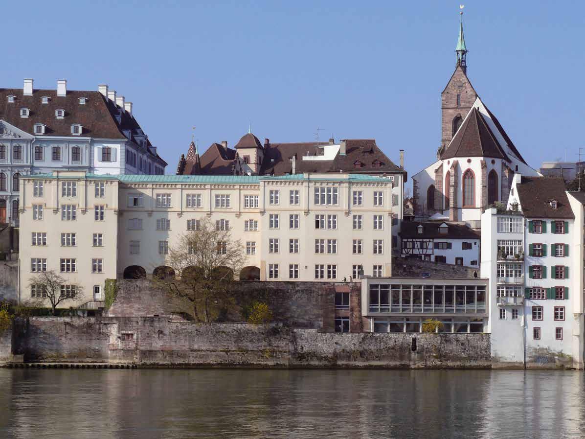 Un homenaje con vistas Cerca del Puente del Medio de Basilea se alza la catedral de piedra roja y verdes tejas cuyas dos esbeltas torres marcan la silueta de la ciudad. En su interior, gótico y románico, se halla la tumba de Erasmus de Rotterdam, que murió en 1536 después de pasar sus últimos años en la ciudad. Junto a la catedral se encuentra el Pfalz, la terraza sobre el Rin, es uno de los mejores miradores de Basilea.