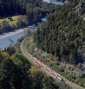 Die gesamte Reise dauert knapp acht Stunden, führt über 291 Brücken, durch 91 Tunnels und klettert über den 2.033 m hohen Oberalppass – wahrhaftig eine der weltweit spektakulärsten Bahnfahrten.