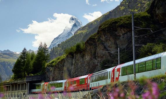 • Glacier Express – eine 291 km (7h 45min) lange Reise von Zermatt nach St. Moritz oder umgekehrt