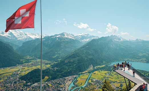 When making your way from Zurich – the urban centre of Switzerland – to Lucerne, sparkling lakes and gentle mountain- and hillscapes dominate the view. In Lucerne, the Luzern–Interlaken Express awaits. A ride on this premium panoramic train delights passengers with stunning views of mountain panoramas, turquoise lakes and plenty of waterfalls.